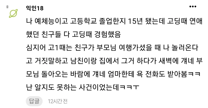 수능 끝나고 갑자기 다들 성관계 했다는 이야기가 들렸다는 의견도 있음